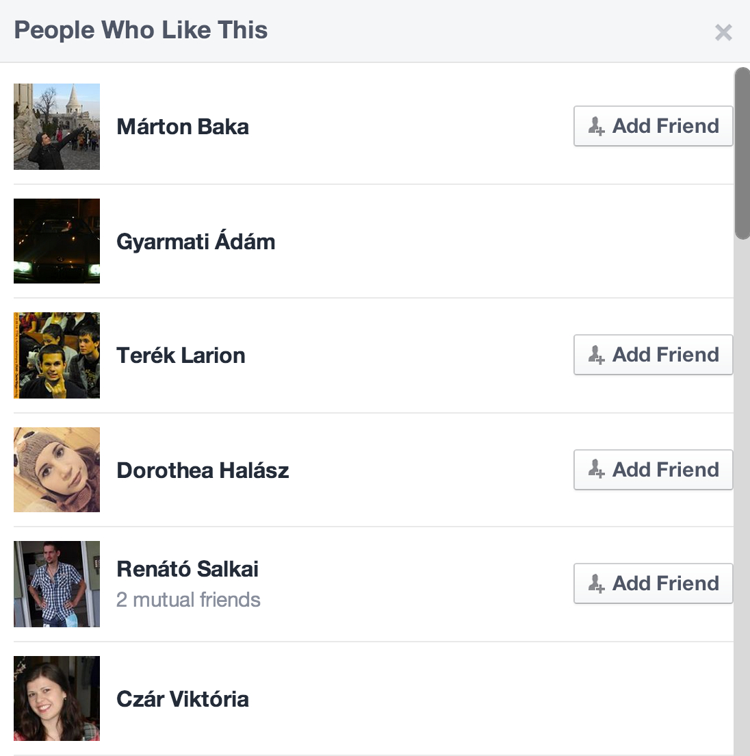 A kép mellett 27(!) „like” látható, többek között az EHÖK Felügyelő Bizottság elnöke, az EHÖK FEB tagja, a BTK HÖK gazdasági alelnöke. Az utókor „kedvéért itt vannak a tetszésnyilvánítók: