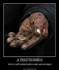 Ekkor az Ofő azt mondta, hogy nagyon nehéz tisztességesnek lenni és annak is maradni! Aztán azt kérte, mondjunk példákat a tisztességre vagy a tisztességtelenségre. Mondott egyet Ő is: „Bár a járókelő megtehette volna, hogy elviszi a padon felejtett tárcát, a tisztessége magasabb volt ennél, és inkább leadta egy rendőrőrsön”. Ekkor a Robi jelentkezett és azt mondta, hogy nem mindenkinek kellett volna elfogadnia a trafikokat, hanem ott kellett volna hagyni, vagy leadni a rendőrségen. Akkor a Szanyi Tibi jelentkezett és Ő meg azt mondta, hogy a Szíjjártó Petinek is vissza kellett volna adnia zsíros kenyereket, mert mindenkinek csak kettő járt, Ő meg legalább ötöt evett, igaz a Szíjjártó utána azt mondta, hogy az neki a törvény szerint járt. És akkor beindult az osztály, de ezt már nem írom le, mert olyan sok példát mondtak, hogy nem győztem megjegyezni. Igaz, a tisztességről nem sikerült példát mondanunk…